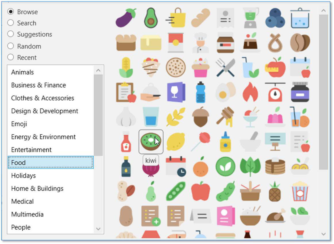 - Random—72 random icons will appear; click the Shuffle button to see a new